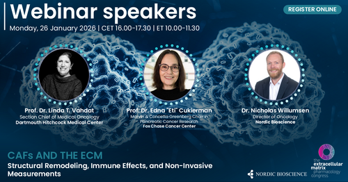 Join this ECM Pharmacology Symposium to explore how cancer-associated fibroblasts (CAFs) and the extracellular matrix (ECM) operate as functional units that shape tumor biology—and how these mechanisms can be translated into clinically useful readouts.